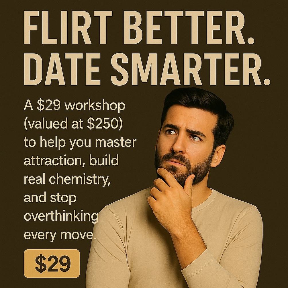 A $29 workshop (valued at $250) to help you master attraction, build real chemistry, and stop overthinking every move.